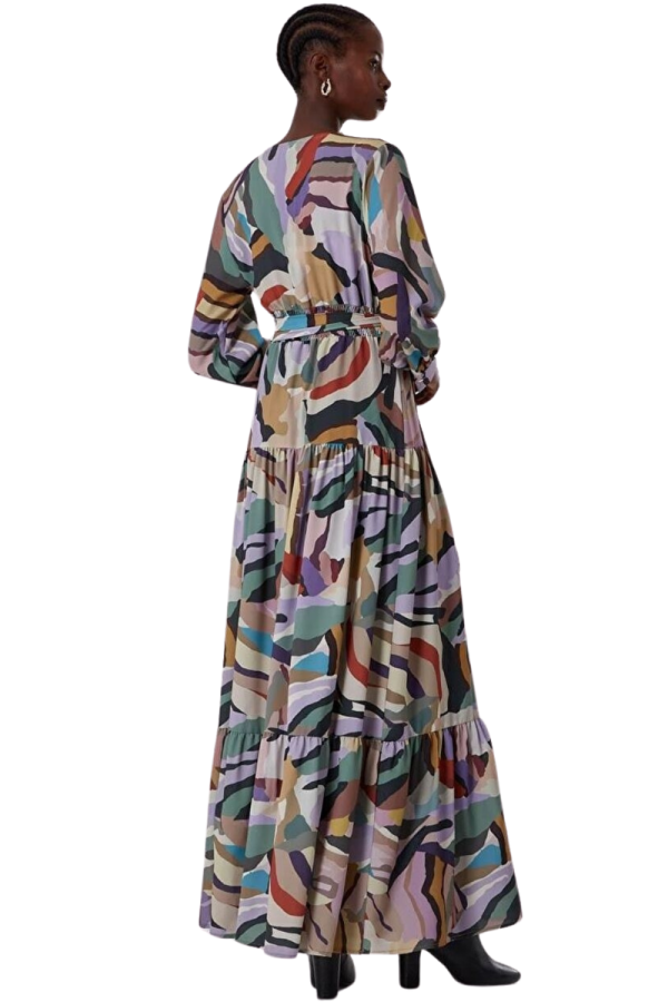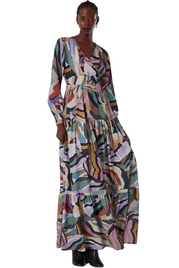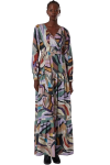 LONG SLEEVE PATTERNED MAXI DRESS 100%POLYESTER. Height: 150 cm. Chest: 90 cm. Waist: 82 cm. Sleeve Length: 55 cm
