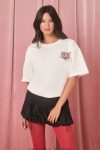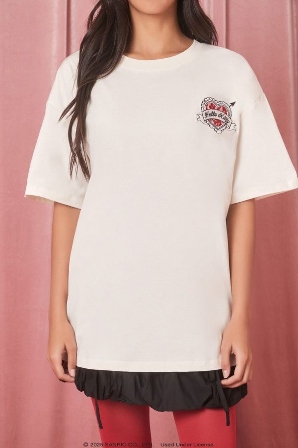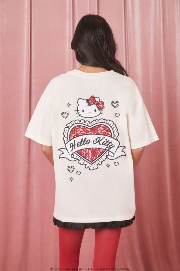 From our Hello Kitty & Friends x Forever 21 collection. this knit tee features front and back lace heart patch with ‘Hello Kitty’ text. dropped short sleeves. a crew neck. and back character and heart embroidery.