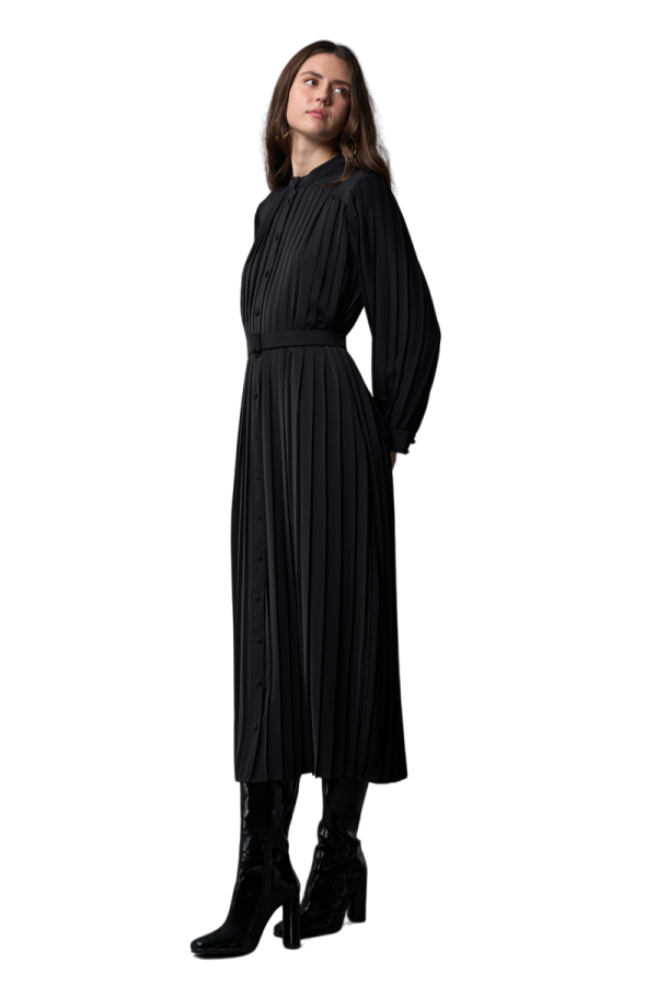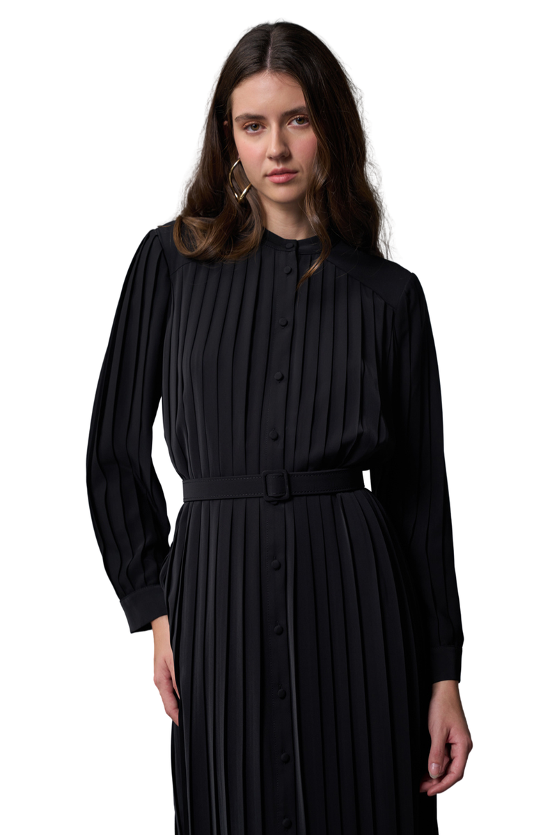 Mizalle Black Judge Collar Pleated Maxi Chiffon Dress 100%POLYESTER Height: 142 cm. Chest: 55 cm. Sleeve length: 62 cm